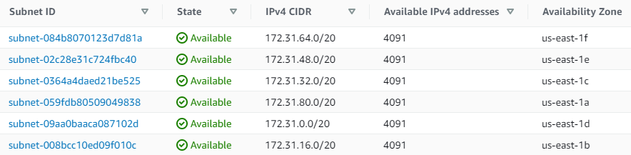 - Configured using /16 IPv4 CIDR block (172.31.0.0/16)