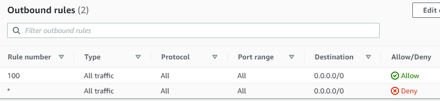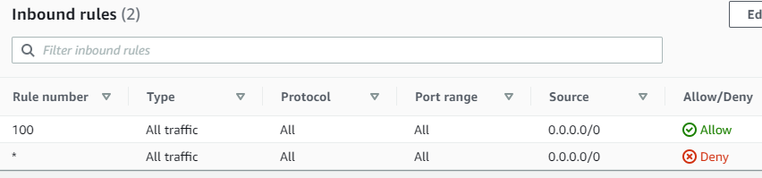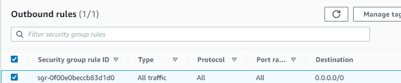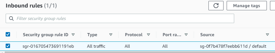 - Security Group: allows inbound traffic from itself – the same security group-, allows all outbound traffic (default)