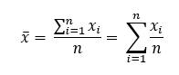 - The average of a sample from the population is denoted with the letter x and bar on it. – sample mean