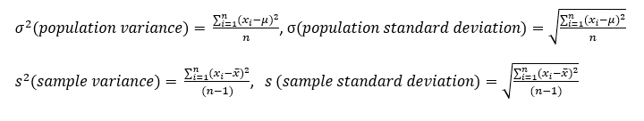 - [Note] When you calculate the sample standard deviation, divide by ‘(n-1)’ instead of ‘n’. It is called Bessel’s correction that makes sure the deviation is not biased.