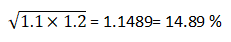 Using the geometric mean, the result is (1000*1.1489)*1.1489 = $1320