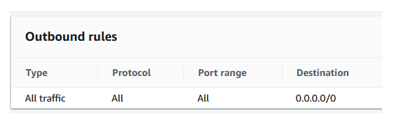 - It allows all outbound traffic.