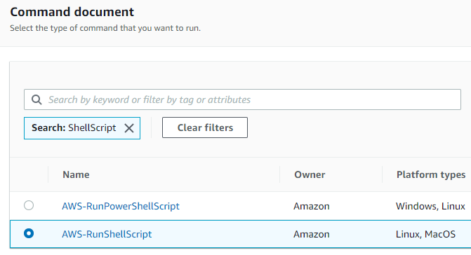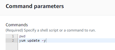 - Type the command directly or select/create the SSM Document