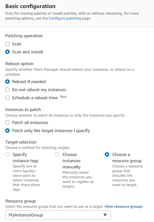 - You can select target instances using instance tags or a resource group.