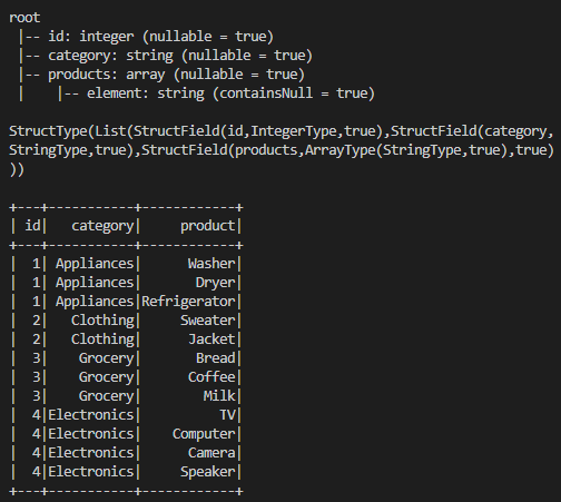 Console.WriteLine(dataDF.Schema().SimpleString);